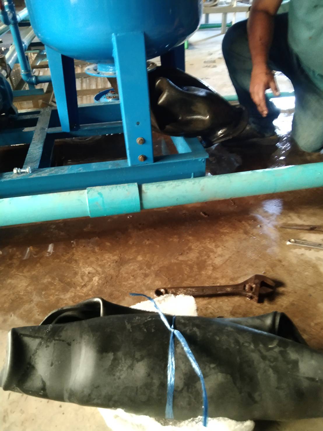 รูปการเปลี่ยนถังแรงดันใหม่แทนถังเดิมที่ไส้ยางในฉีกขาด